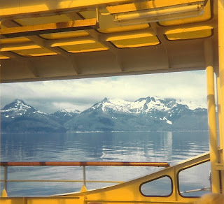 I will let the final two archive pictures I took (below) as a 15-year-old kid signify her Alaska Glory Days. True-blooded Alaskan aficionados of the streamlined ferry claim that the Wicky's soul navigated right back to Alaska, where the ship had offered decent dining, a deep, stable hull that would carry vehicles and cargo through any rough seas, all the while offering up those golden-tinted translucent upper deck panels sheltering those riding above.